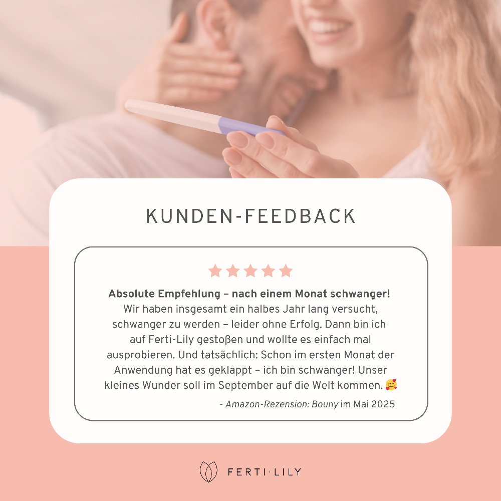 Viele Paare haben uns bereits freudig bestätigt, dass sie nach vielen erfolglosen Versuchen endlich schwanger geworden sind, nachdem sie FERTI·LILY benutzt haben.