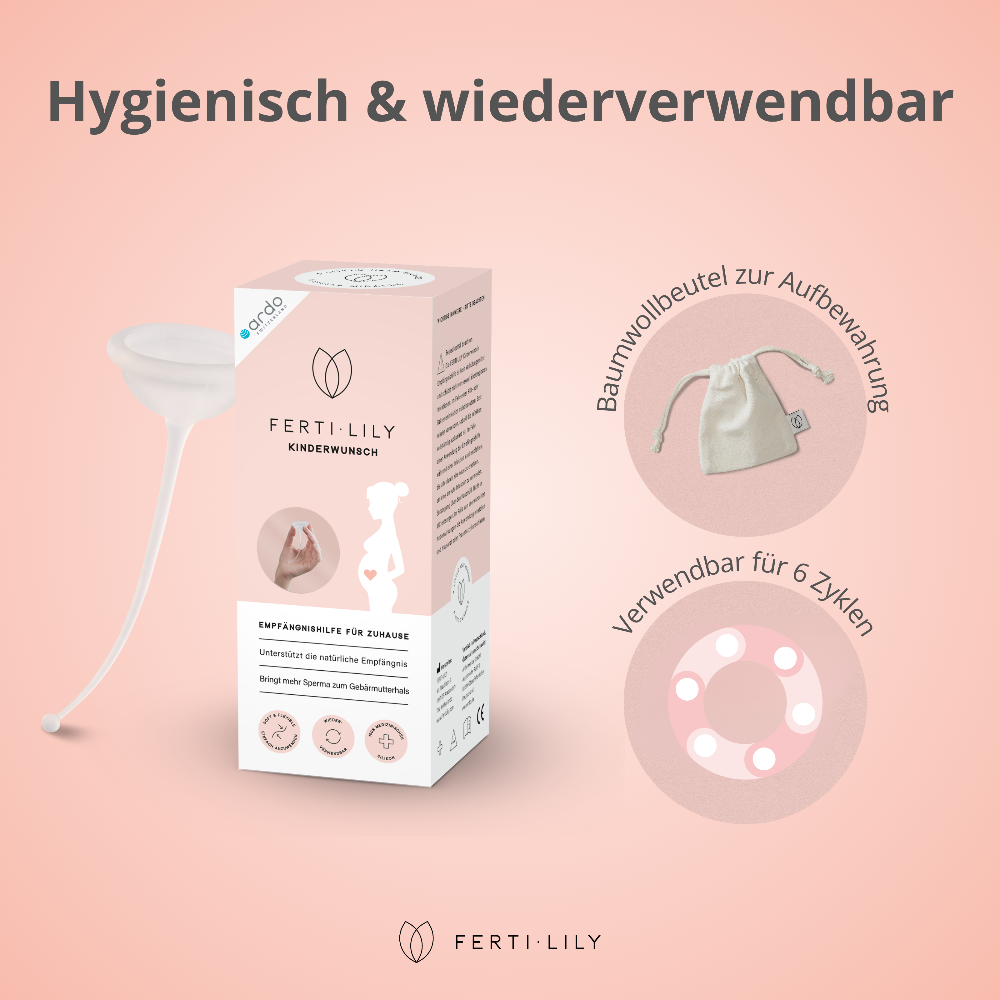 FERTI·LILY ist die erste hormonfreie Empfängnishilfe aus weichem, medizinischem Silikon, die Paare mit Kinderwunsch sanft unterstützt, zuhause schwanger zu werden.